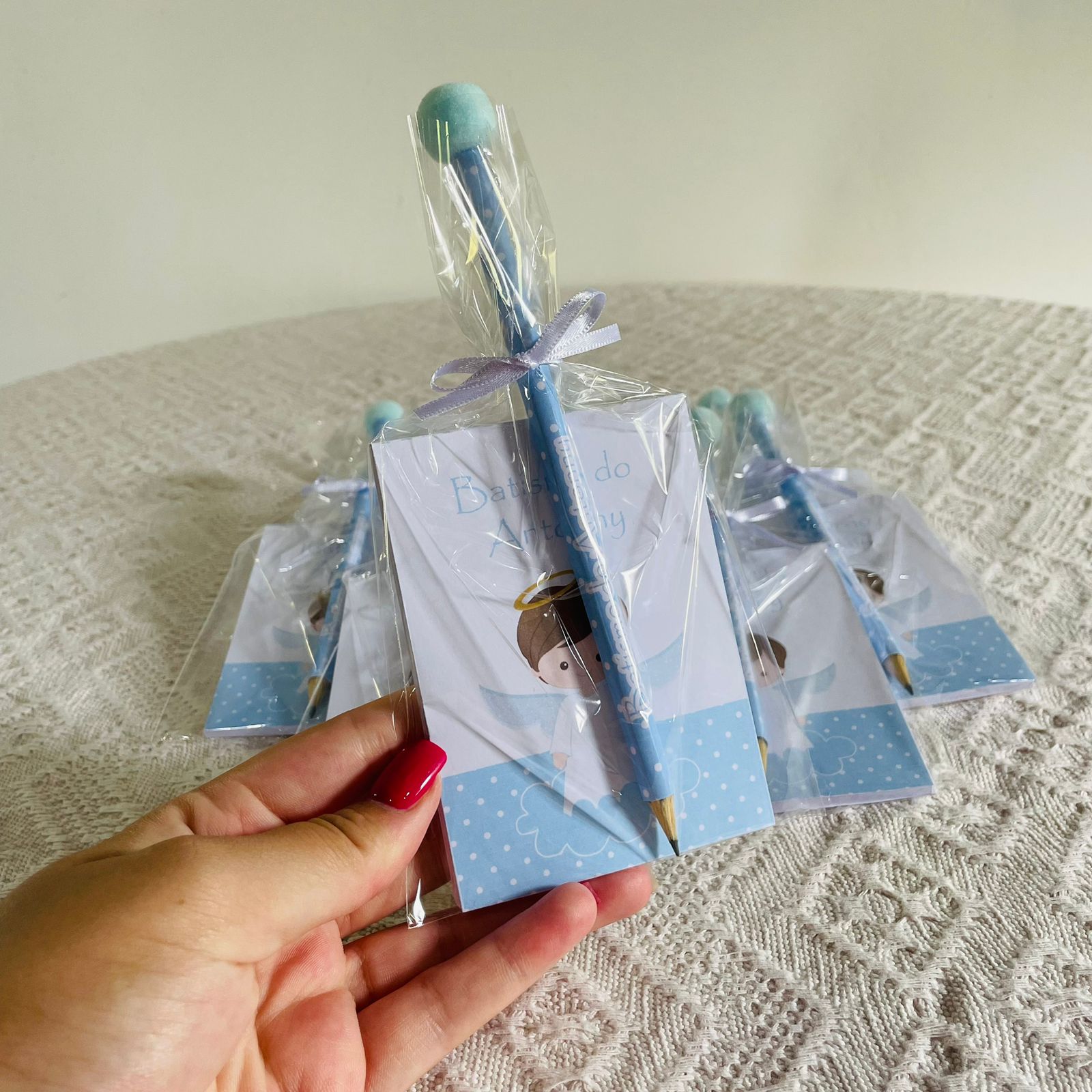 Lembrancinha personalizada bloquinho de anotação no tema batismo